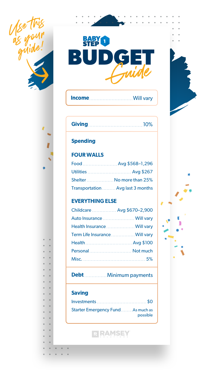 If you create a budget by following these guidelines, you won’t be wondering where all your money went at the end of the month. You’ll actually be able to save up that starter emergency fund even faster and gain real momentum throughout the rest of the Baby Steps! Stick with it and don’t forget: A budget doesn’t limit your freedom—it gives you freedom.