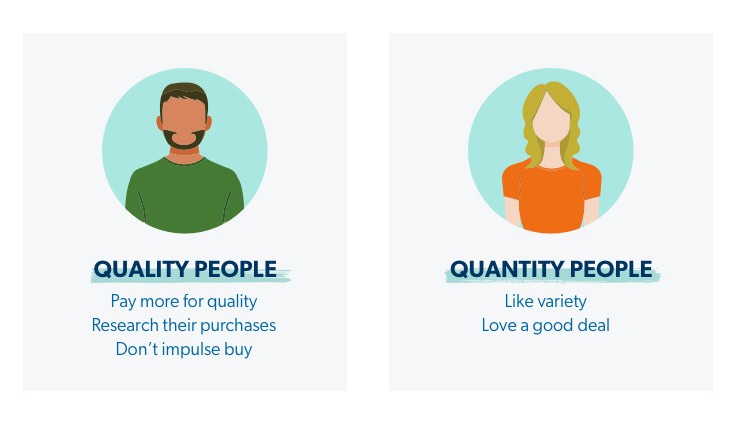 They enjoy the creativity and possibility that variety offers. You like having ten options versus going back to the same thing over and over. People who lean toward quantity are often great bargain shoppers. They pride themselves on the art of a great deal.